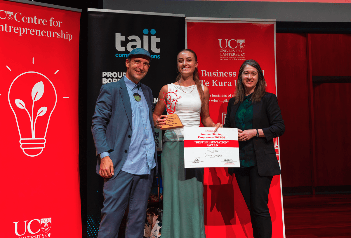 PacSea is a very early-stage venture founded by 18-year-old Olivia Cooper, driven by a genuine curiosity for science and a strong desire to work on real-world climate solutions. While studying biochemistry at the University of Canterbury, Olivia began PacSea through the UC Summer Startup Programme, using it as a chance to explore a simple question: could fast-growing local seaweed be turned into a plastic alternative?
